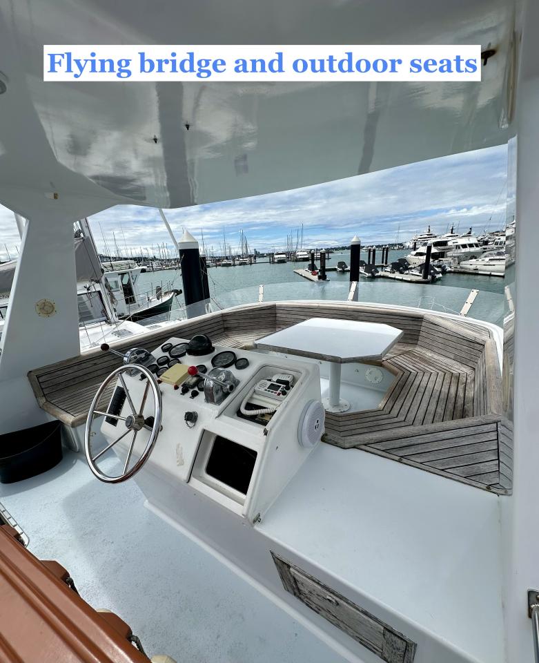 John Menzies, her owner of 37 years, is a well known consulting marine engineer and maintains her impeccably. He is as much a part of his boat as the kauri timber of her hull, a warm, friendly host and a confidence-inspiring skipper at ease in any company.